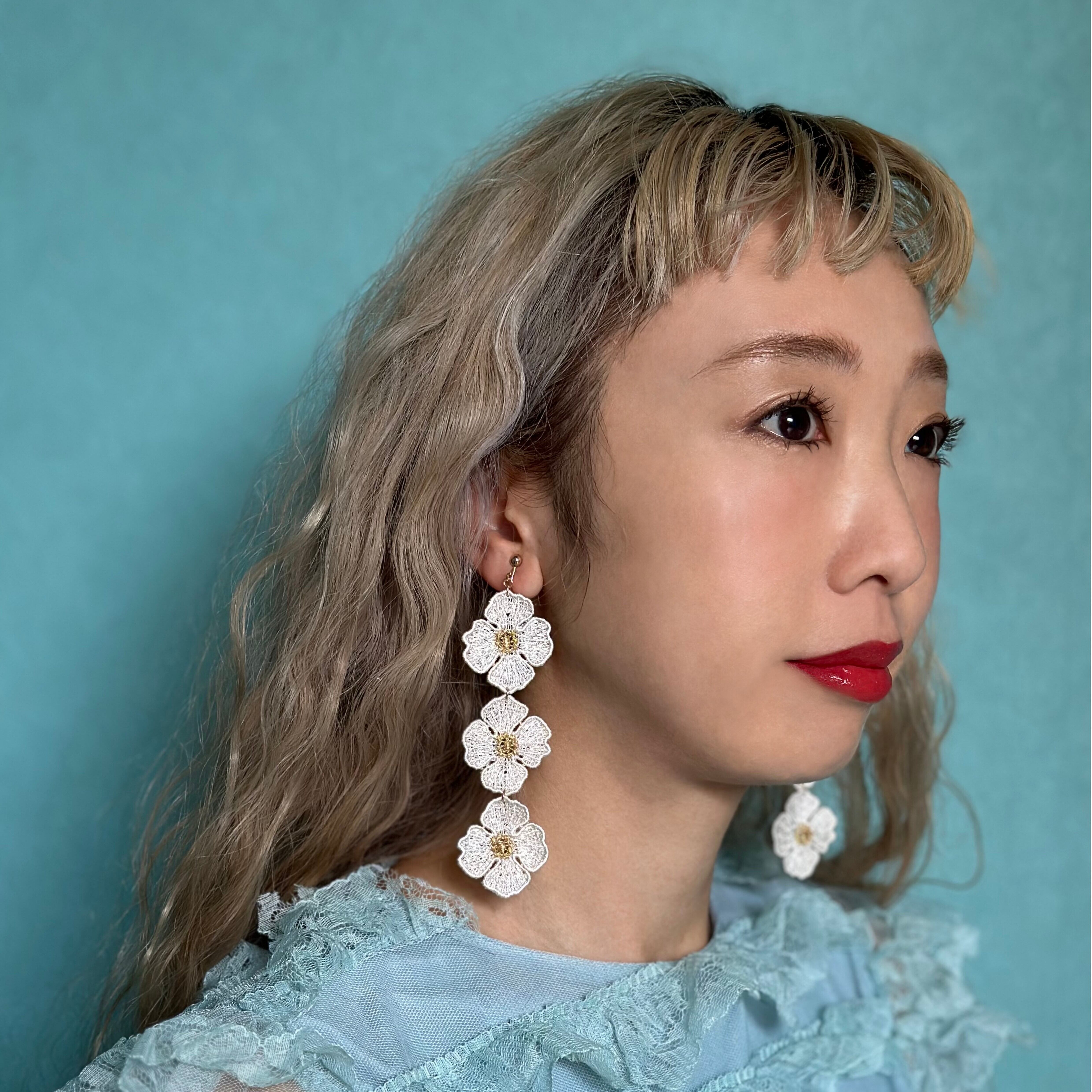 糸で出来たモチーフは透け感があり軽く、耳への負担も少なく顔回りを華やかに彩ります。