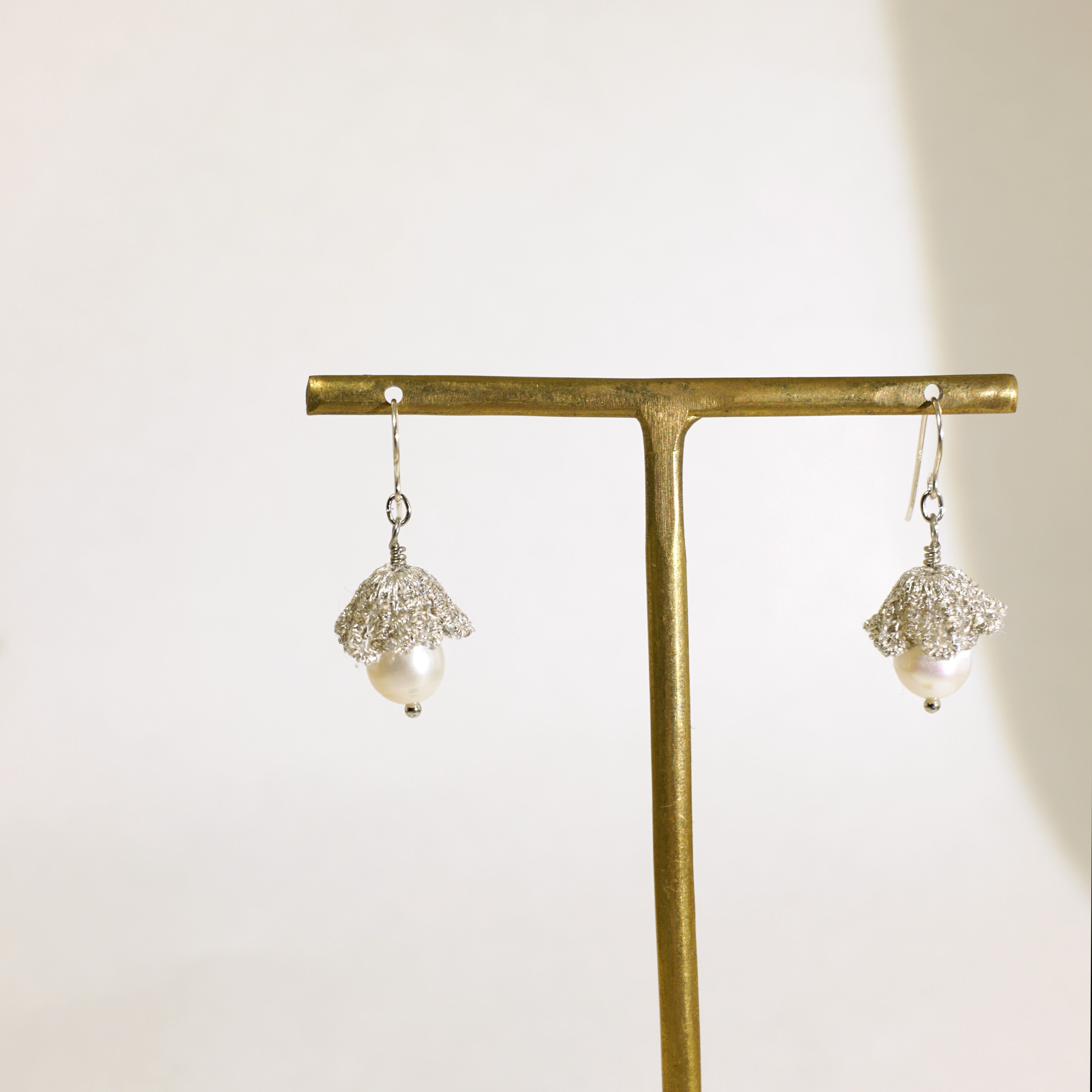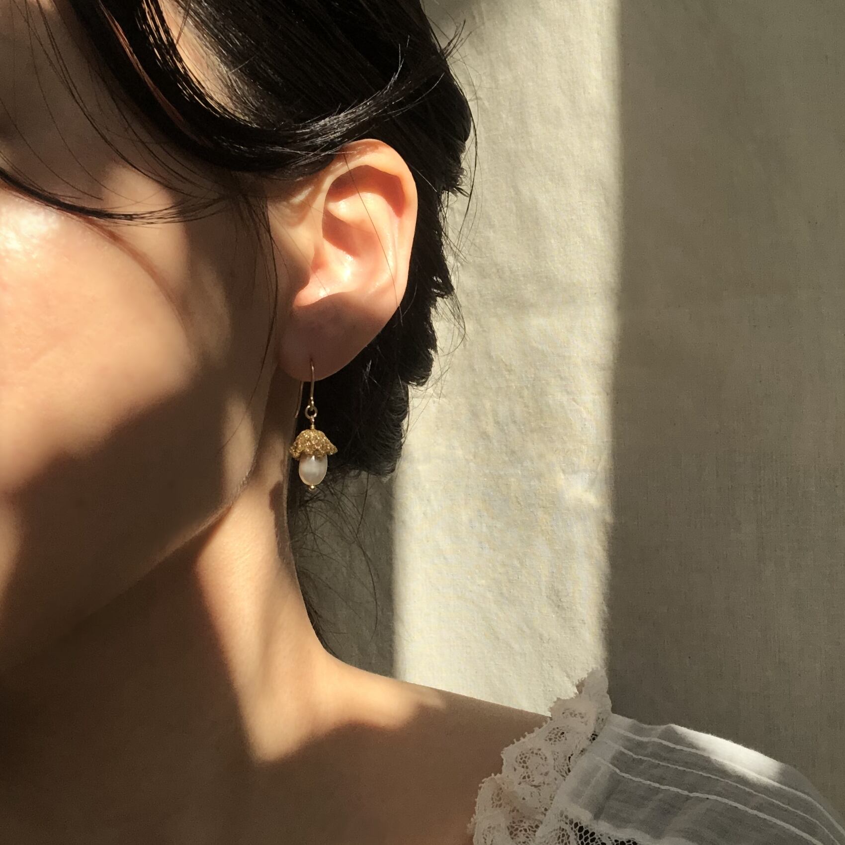 奥ゆかしく咲くスズランをイメージし、淡水パールを合わせ小さな耳飾りに仕立てました。