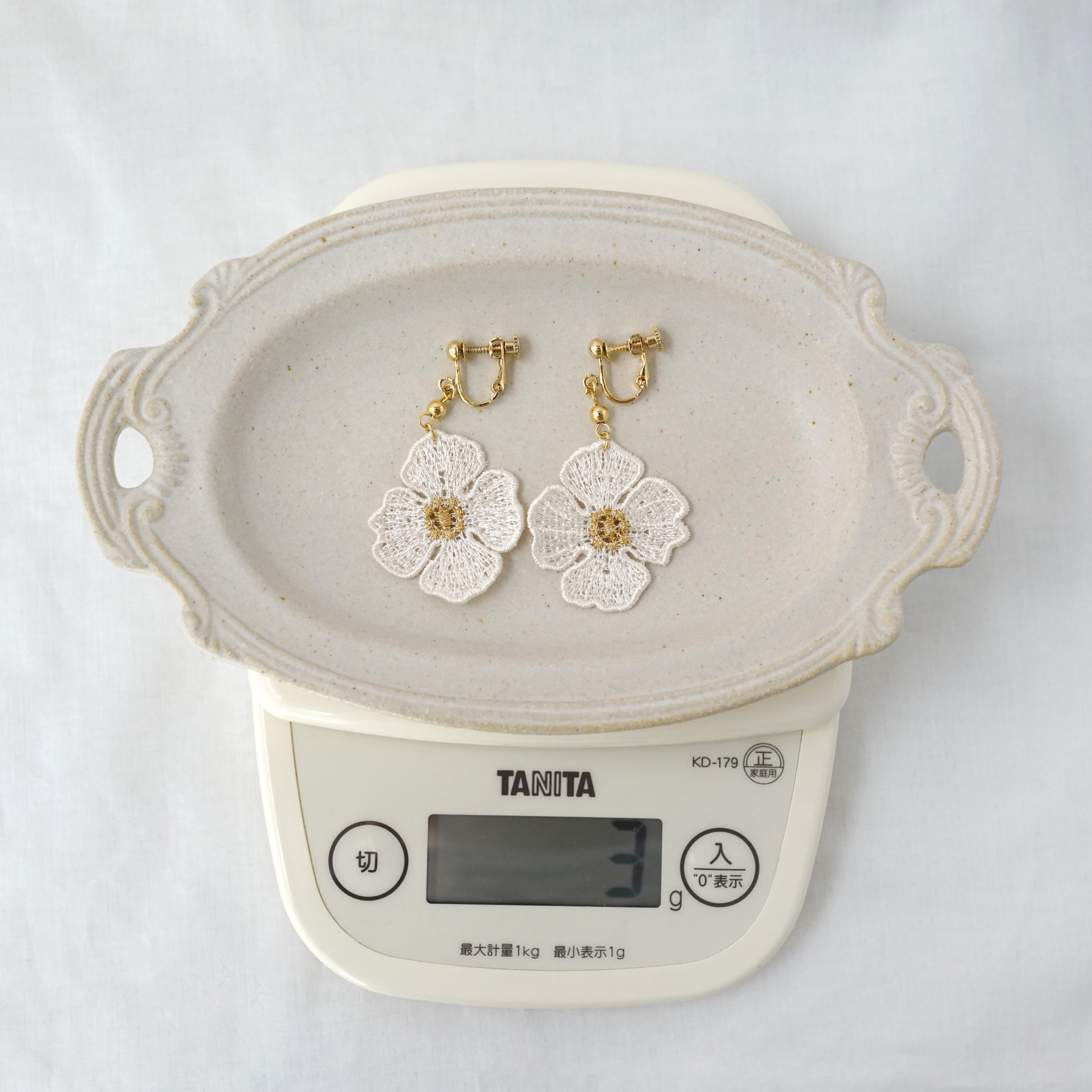 糸で出来たモチーフは透け感があり軽く、耳への負担も少なく顔回りを華やかに彩ります。