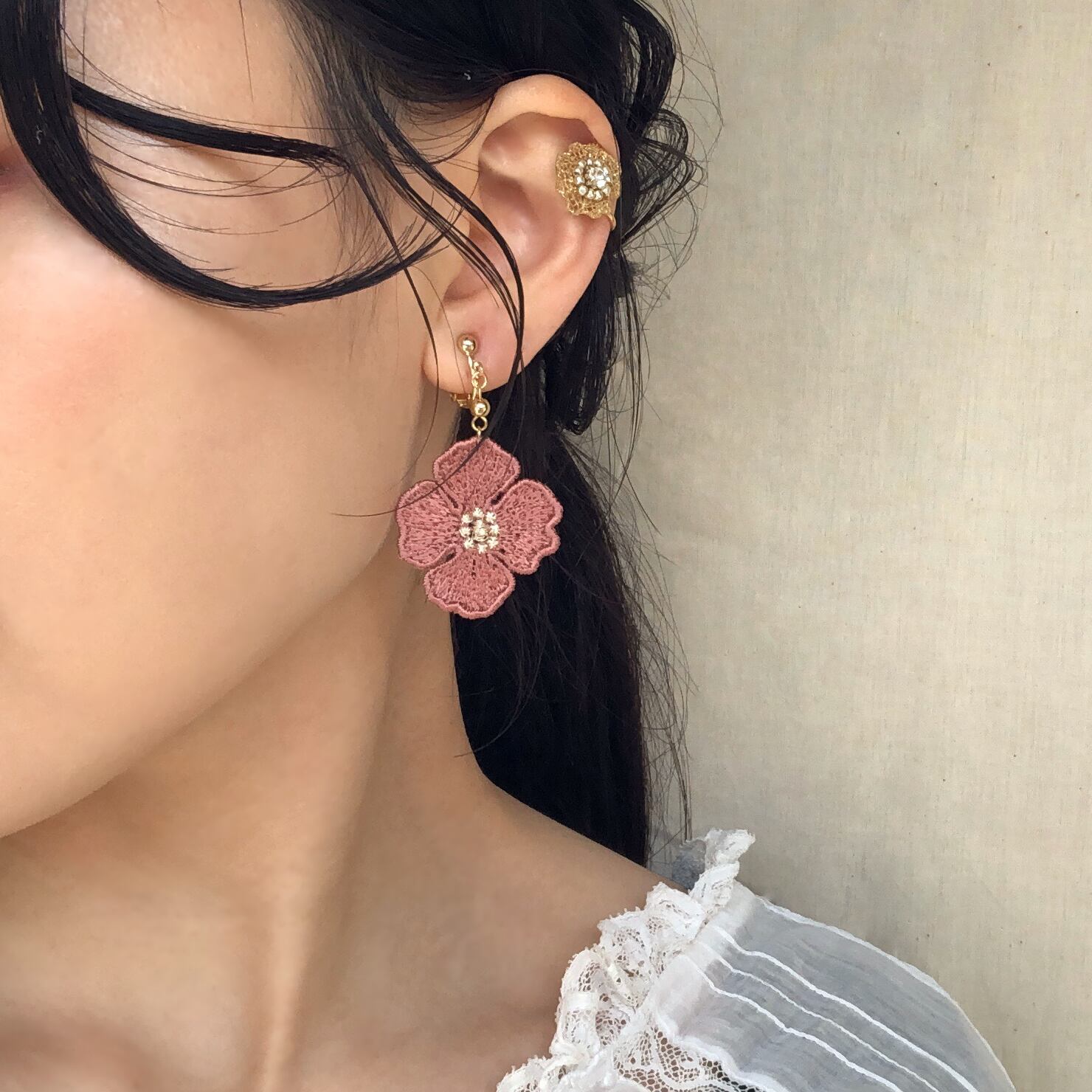 糸で出来たモチーフは透け感があり軽く、耳への負担も少なく顔回りを華やかに彩ります。